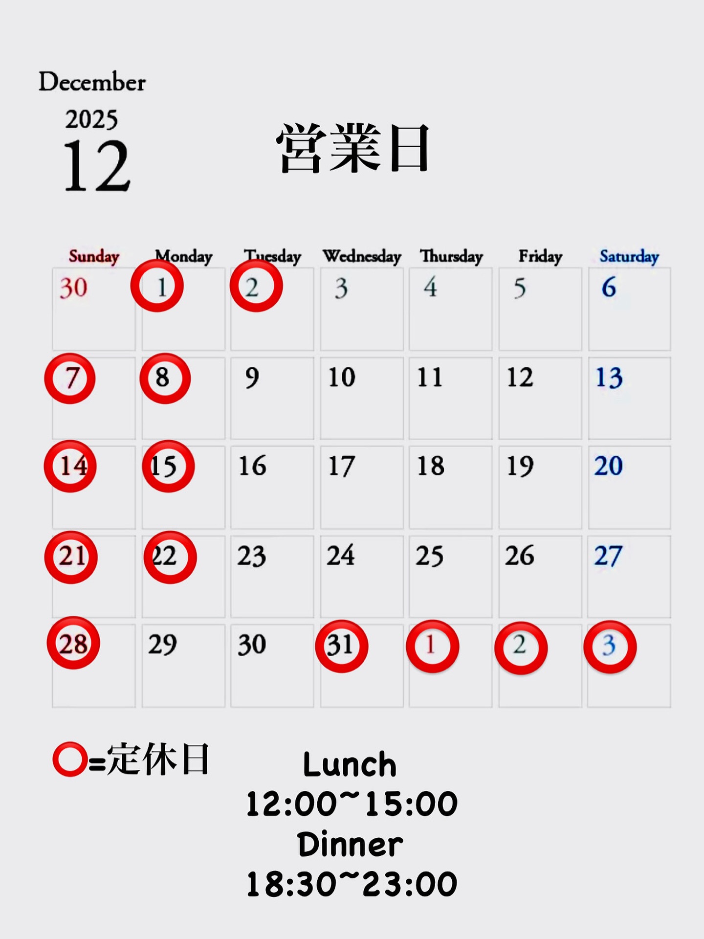 ⭕️年末年始のお休み 12/31(水)〜1/5(月)