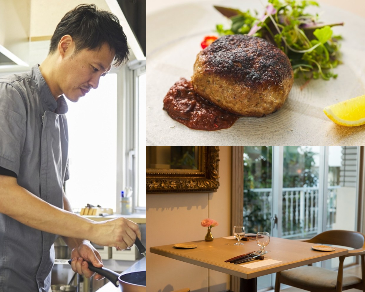可能な限り沖縄県産のものを、生産者から直接仕入れるという小林シェフ。スペシャリテは、今帰仁アグーを使ったハンバーグ。「あーすん」は「混ぜ合わせる」という意味の沖縄言葉だ。